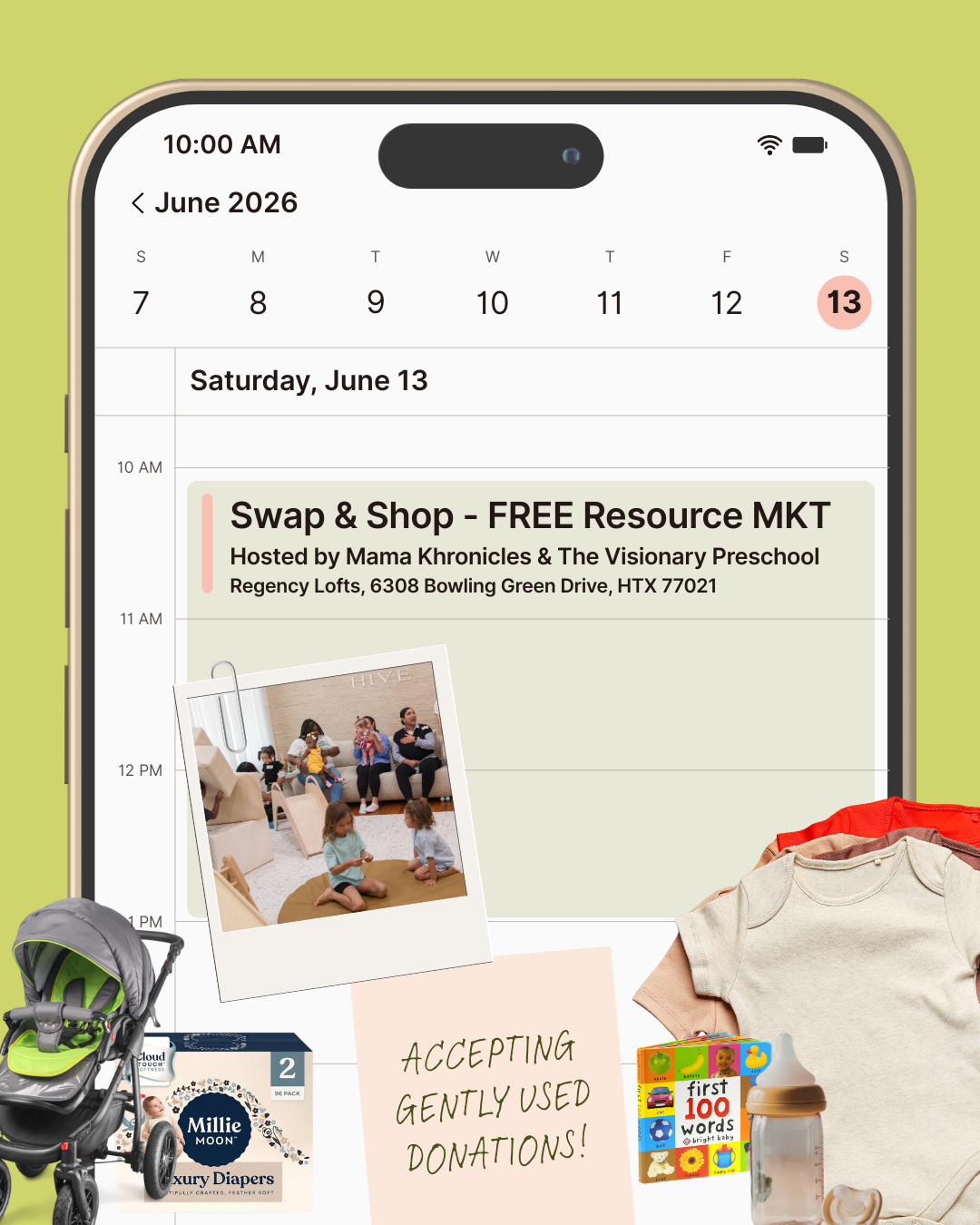 The Swap & Shop is a free, curated resource market where gently loved baby gear finds a new home, and Houston mamas find their village.